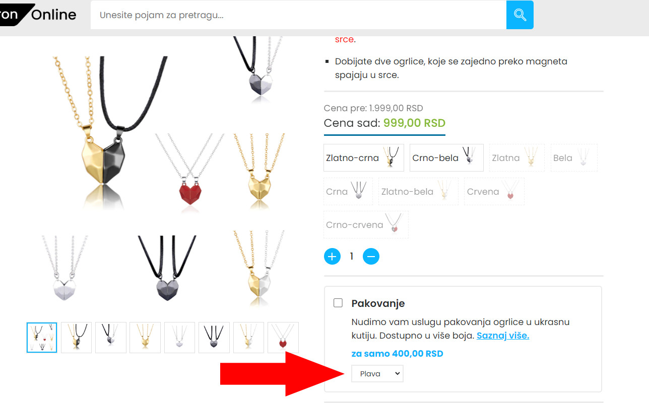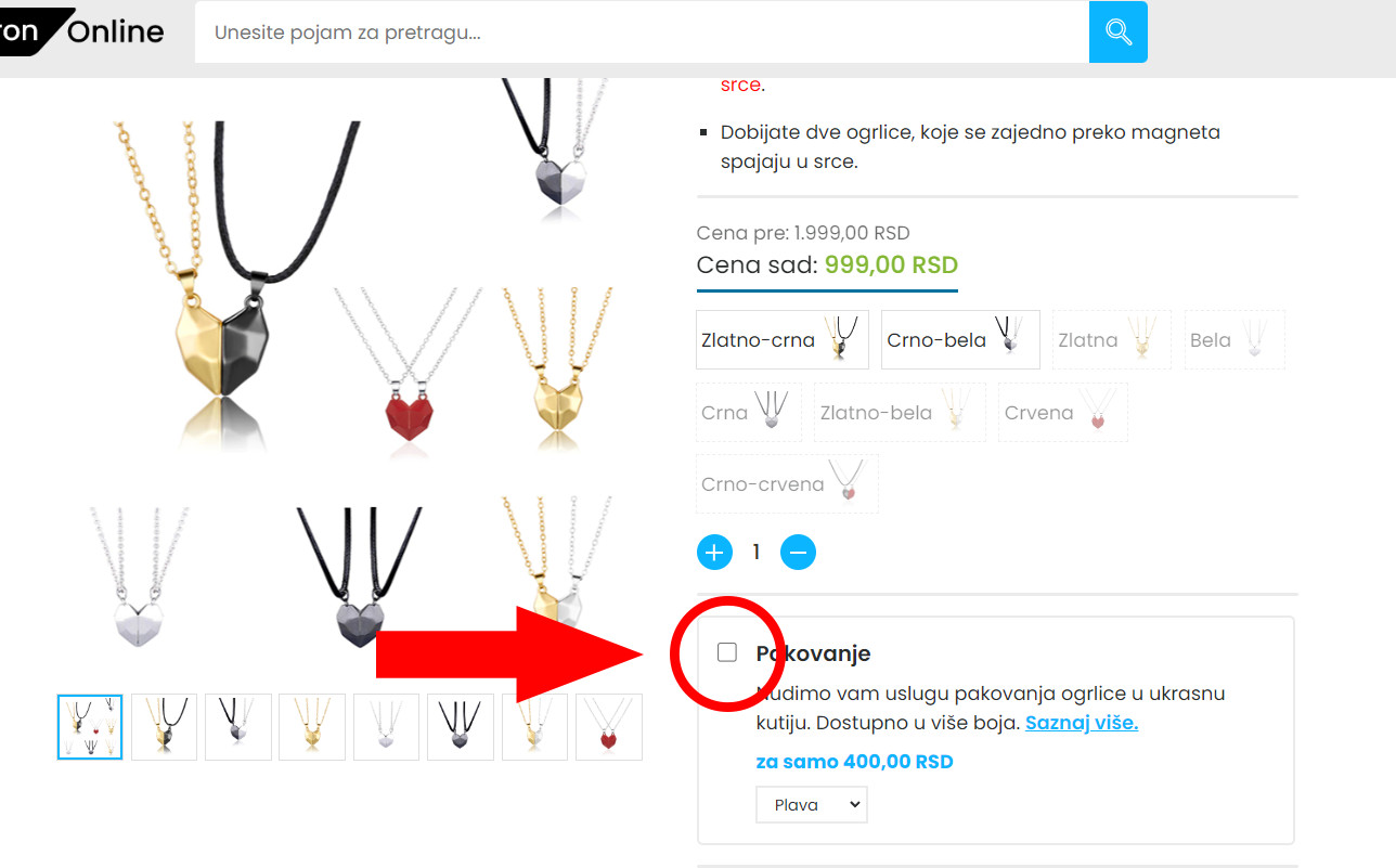 Ova usluga je dostupna samo za određene artikle na sajtu. (npr. Magnetne Ogrlice Srce)